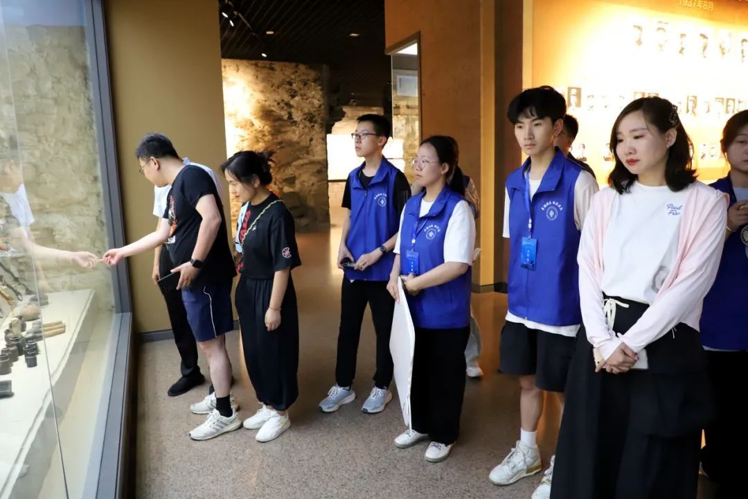 实践队参观了馆内收集展示的大批抗战历史文物和革命文物。一张张的灰白写实的照片、一个个落满灰尘的物件、一本本的纸张摩梭泛黄的革命年代的书卷都呈现在实践队每个队员面前。在这里,每一个无声史物背后都潜藏着一个个令人动容的故事,都见证着那个硝烟弥漫、炮火纷飞的抗战岁月。