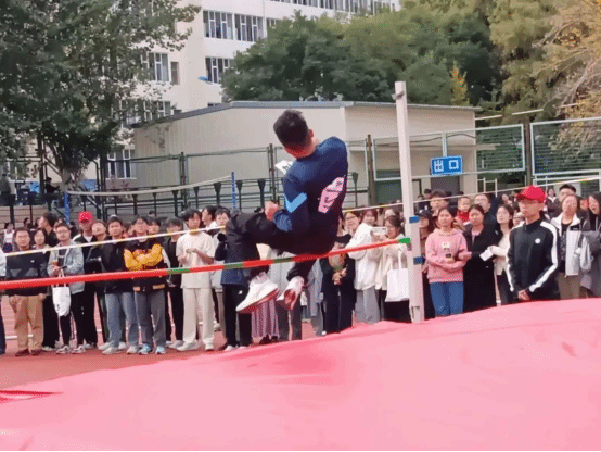 与此同时,操场西南角的“三级跳远”决赛正进行得火热。助跑、跳跃、腾飞、落地。其中,武家旭第一跳就跳出了10米06好成绩,紧接着王国昊、张锎文也各自完成了精彩一跃。他们展现出了卓越的体能和高超的技巧,这不仅是对他们身体的考验,更是对意志的挑战。