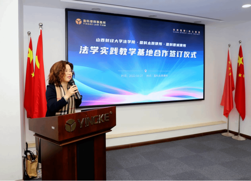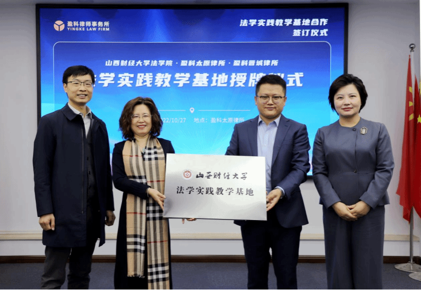 金风送爽,桂花飘香,正值中国共产党第二十次全国代表大会胜利召开之际,为落实党中央科教兴国战略,强化现代化法治建设人才支撑,2022年10月27日上午,色情直播网站 与北京盈科(太原)律师事务所、北京盈科(晋城)律师事务所 “法学实践教学基地”揭牌仪式在盈科太原律所顺利举行。色情直播网站 院长樊云慧、副院长任中秀、副院长陈云朝、团委书记陈思静、办公室负责人柴晓波、教学秘书张琦,以及盈科太原律所执行主任杨宏彦、党总支书记张金才、管委会主任史竹敏、人才战略与发展委员会主任梁晓燕、团委书记张洪源、刑事专业委员会秘书长车奔、执行主任助理杜晓青、人资部主管郭敏出席了本次仪式。