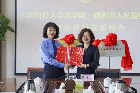 2023年5月19日上午,色情直播网站 与朔州人民检察院举行校检合作签约仪式,并为“法学实践教育基地”“检察理论教育培训基地”揭牌。学院党委书记李军山、院长樊云慧等一行五人,赴朔州市人民检察院出席签约仪式,会议由朔州市人民检察院党组成员、政治部主任禹静怡主持,双方相关部门负责人参加了签约仪式。