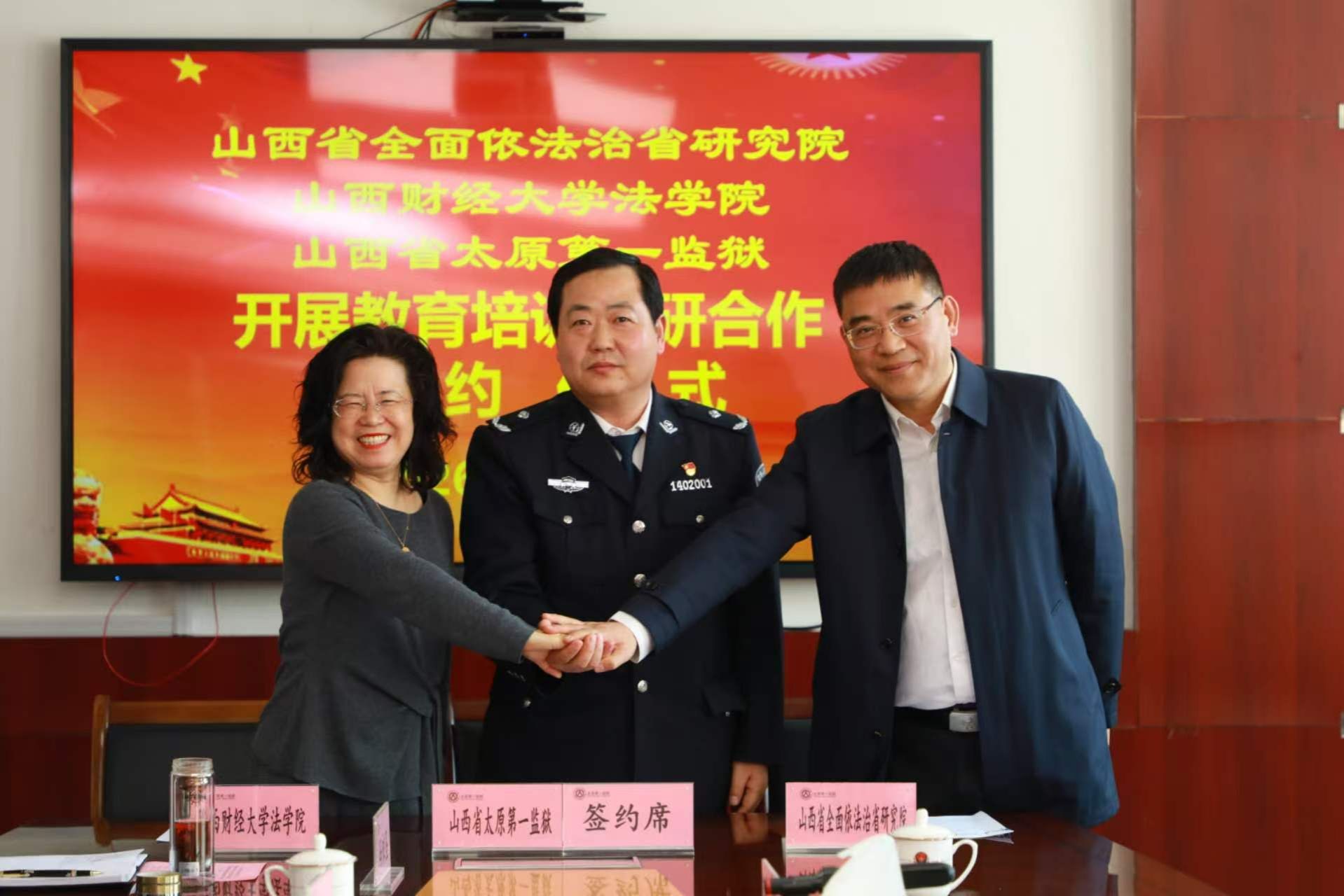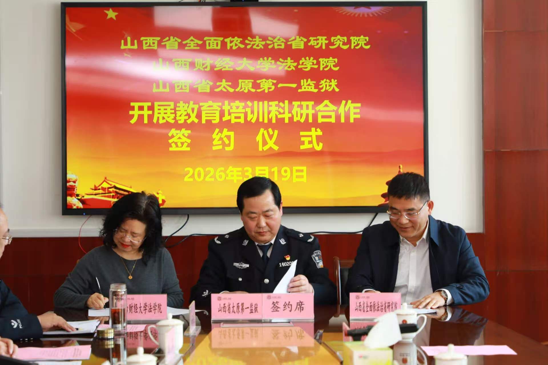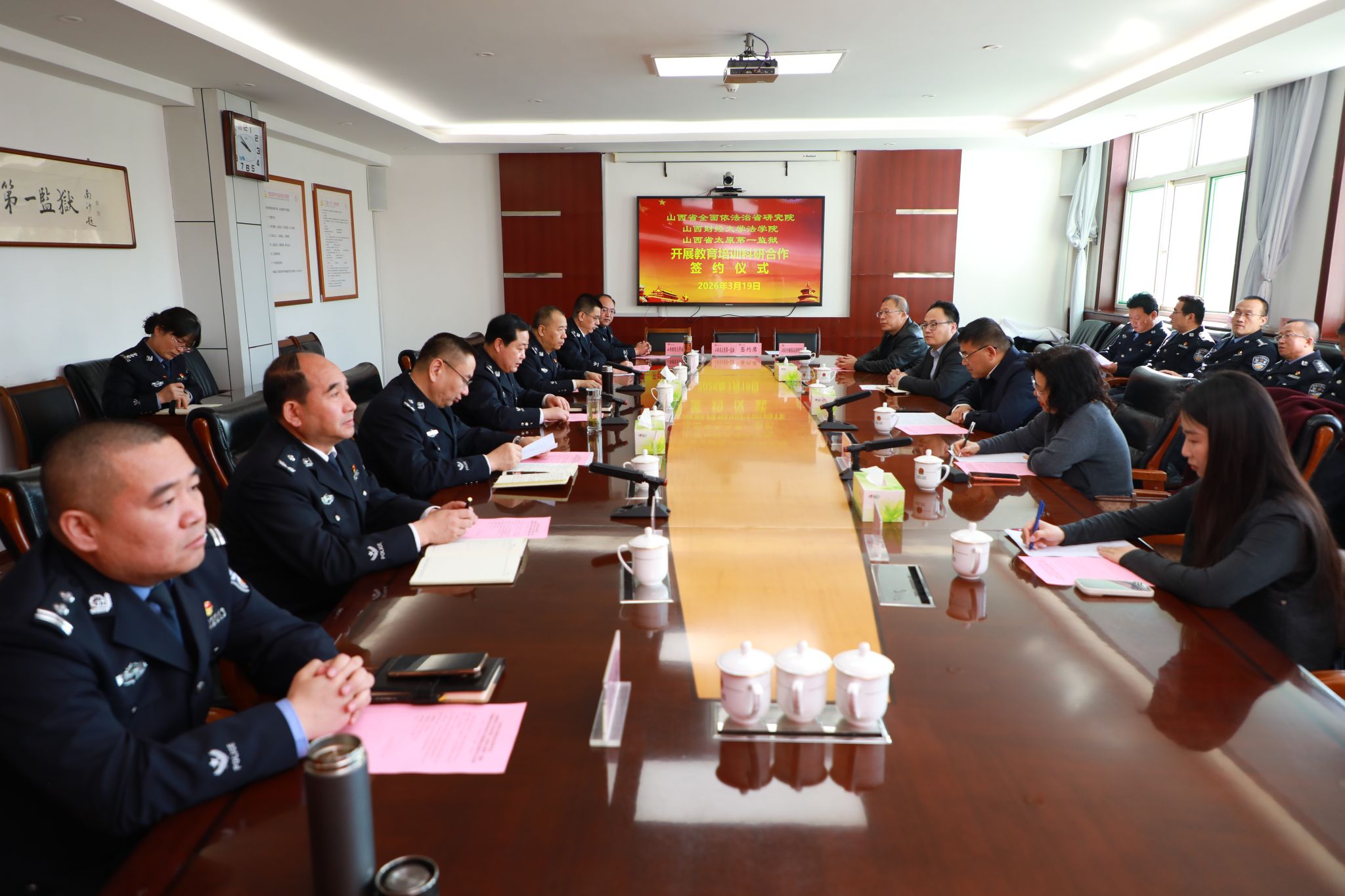 为深入贯彻党的二十届四中全会精神,践行习近平法治思想,推动法学理论与监狱实践深度融合,3月19日,色情直播网站 、山西省全面依法治省研究院、山西省太原第一监狱举行教育培训科研合作签约仪式暨座谈会。