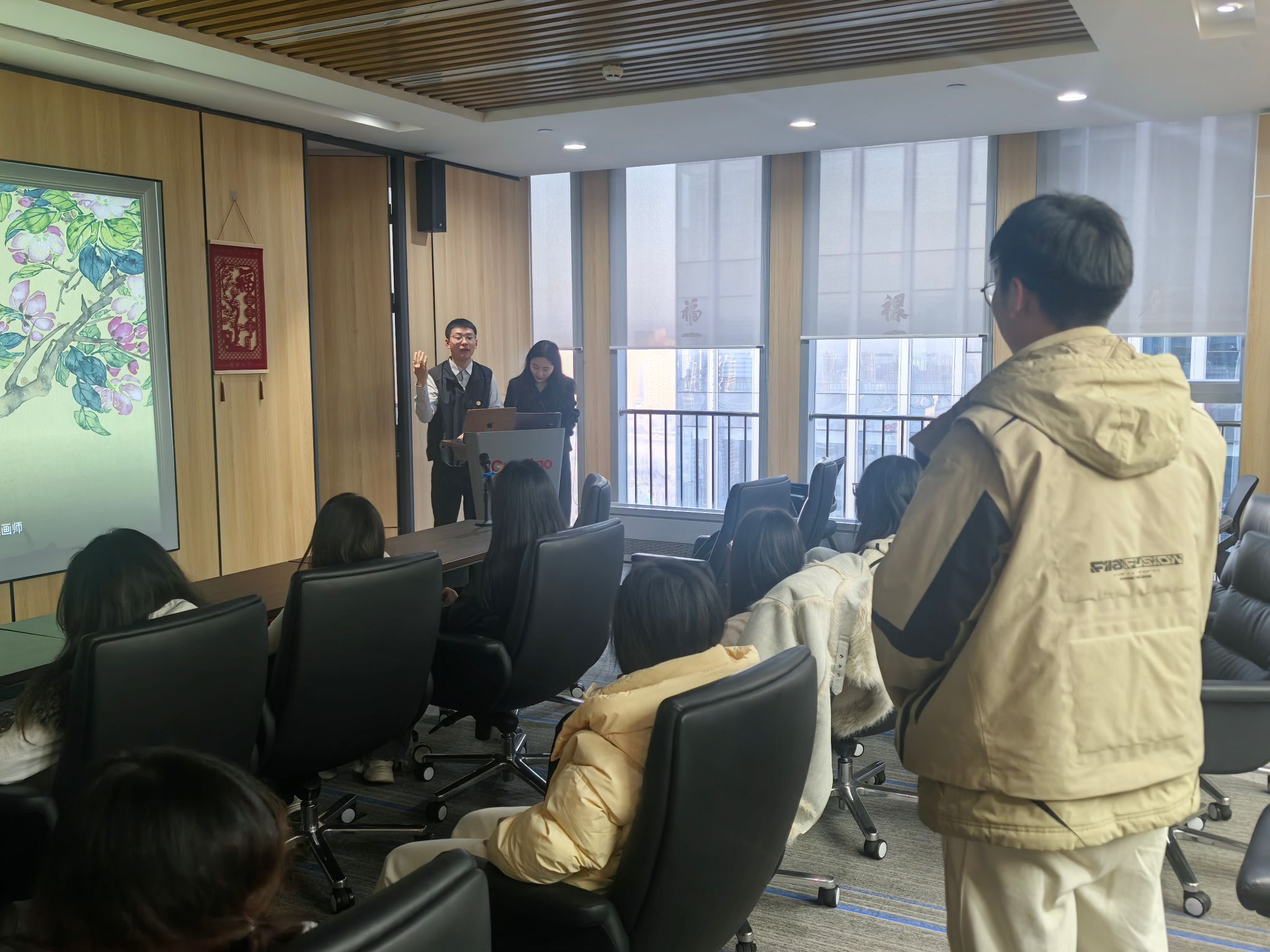 师生一行先后参观了律师办公区、党建活动室、奖项陈列柜等场所,直观感受律师办公环境与律所文化氛围,参观结束后共同合影留念。