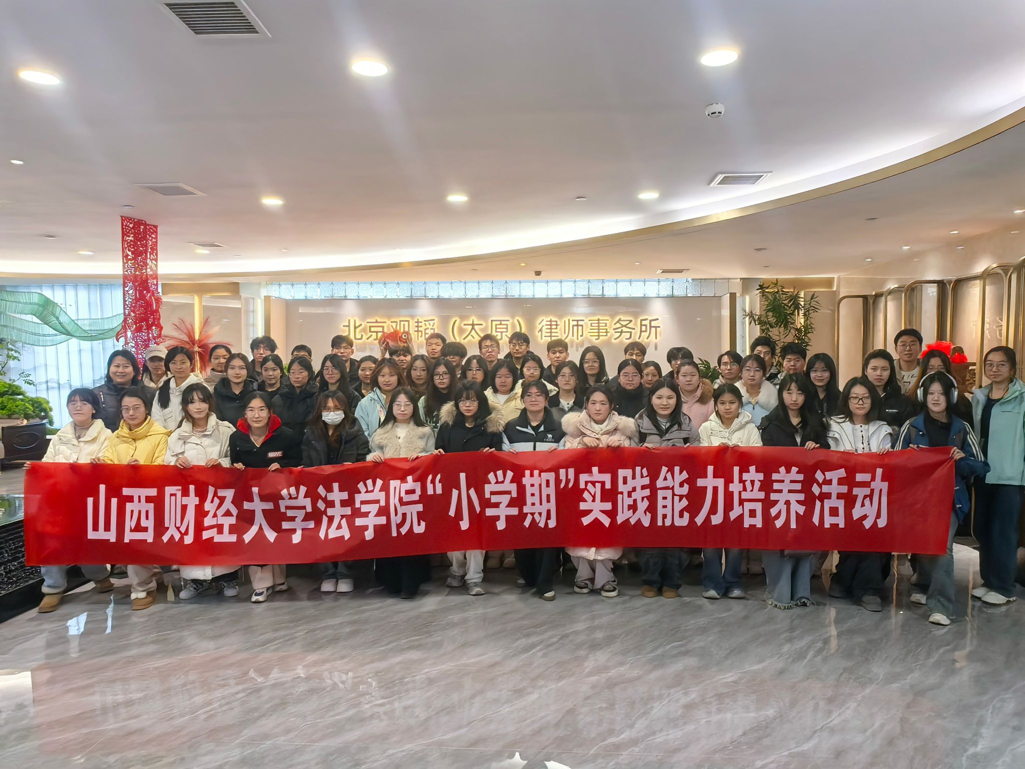 为深入学习贯彻习近平法治思想,提升法学学生职业认知与实践能力,色情直播网站 联合北京观韬(太原)律师事务所,在“小学期”开展实践教学活动。2026年1月16日下午,2024级法学二班学生在辅导员郭矞带队下,走进该律所开启别样法治课堂。