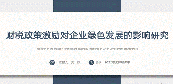 2022级博士生贾一丹利用法律经济学分析方法,从企业绿色发展层面探讨财税政策影响企业绿色发展的作用机制。汇报结束后,2022级博士生靳彤彤参与了主题讨论,就文章提到的新质生产力和企业绿色发展的结合进行了探讨。博导孙淑云教授就文章研究对象进行了点评并给出修改建议,认为涉及财政政策和税收政策两方面的话范围有点广不利于聚焦、深度研究。博导郗伟明教授紧接着进行了点评,提出“三多三少”的建议。第一,叙述的比较多,政策列举比较少;第二变量归纳比较全,效应分析比较少;第三,效应检验多,协同法律少。