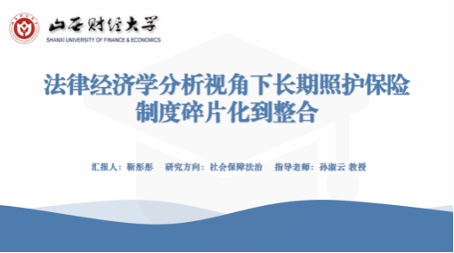 靳彤彤同学则以长期照护保险制度为研究对象,从长期照护保险、制度碎片化、基金整合到制度整合等核心概念切入,立足制度变迁理论、成本收益理论、外部性理论等理论基础进行长期照护保险制度碎片化诊断,对筹资与待遇支付制度碎片化的效应测度与整合实证分析,基于精算模型的模拟与验证进行筹资制度整合的方案设计以及标准化服务包与成本效用优化进行待遇支付制度整合方案设计,提出完善长期照护保险法律制度建议。