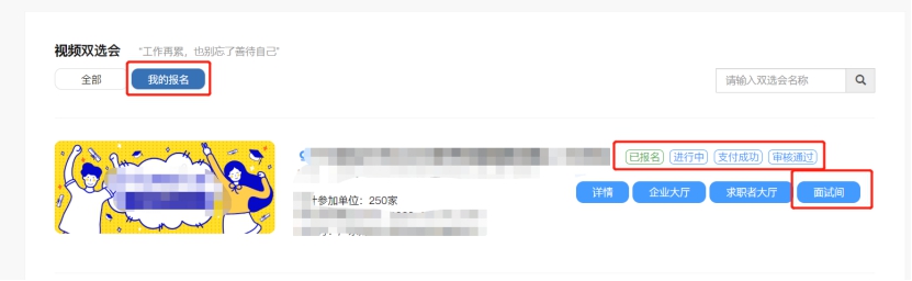 点击单位登录(无账号点击注册,选择对应学校入驻,账号认证通过后再报名)→视频双选会→云就业视频双选会色情直播网站 专场→进入点击“报名”→填写职位、面试官等信息→提交等待审核。